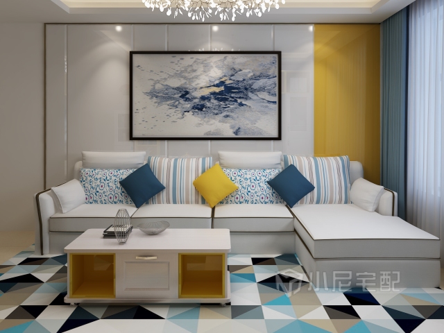 L型沙發(fā)寬大舒適,顏色各異的抱枕,讓素色的沙發(fā)也變得活潑起來。