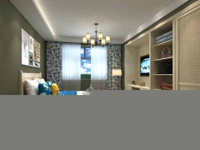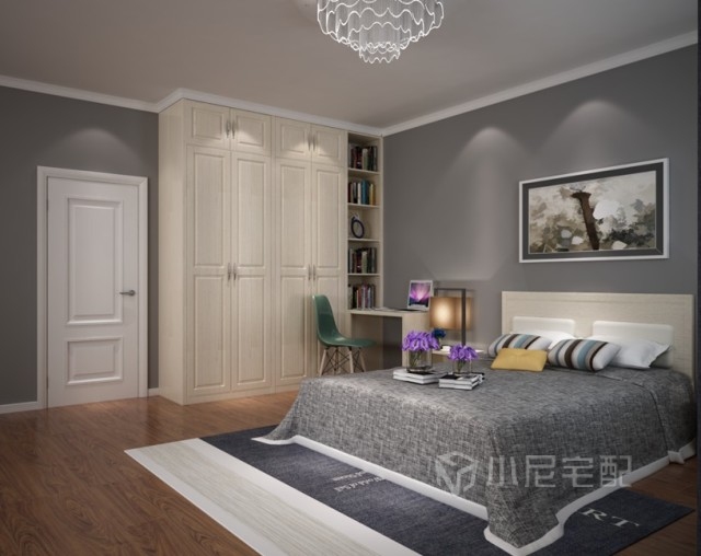 定制柜體包含了衣柜和電視柜,整面墻的設計顯得空間更加統一