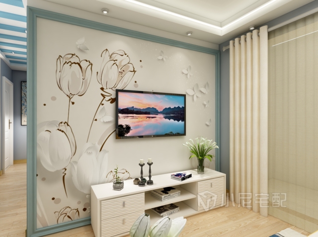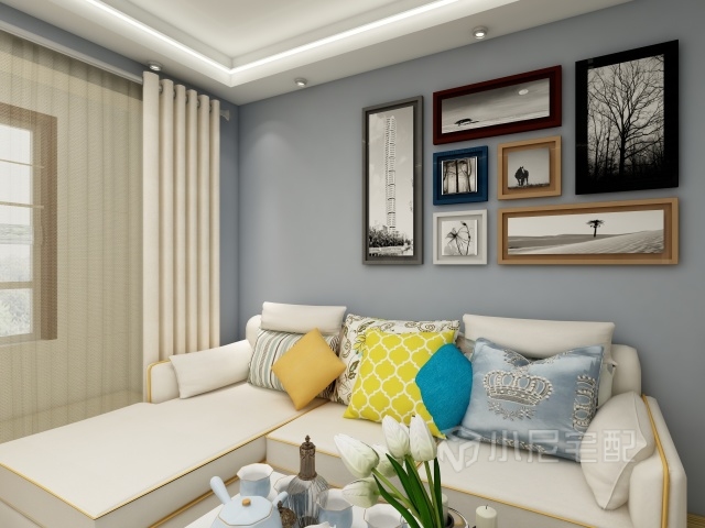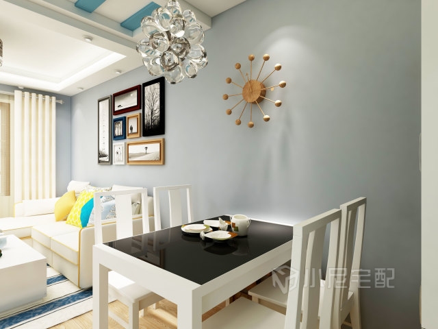 客廳空間的顏色比較偏清新藍,干凈敞亮。
