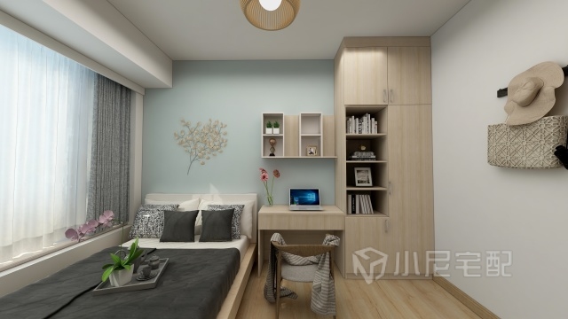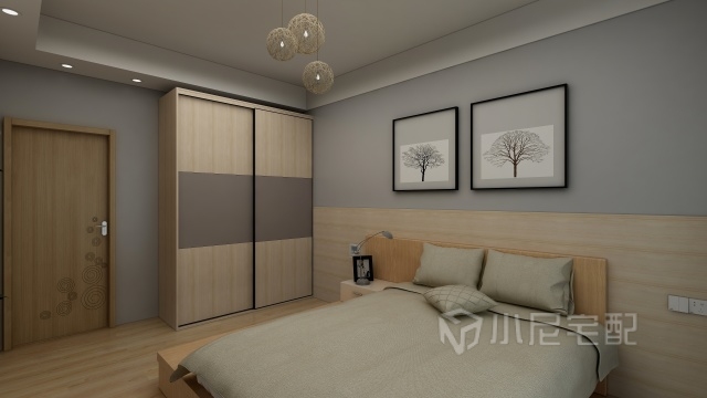 臥房床和衣柜的簡約木色設(shè)計,將人帶回到大自然,回歸平靜,為什么不讓自己做個美夢!