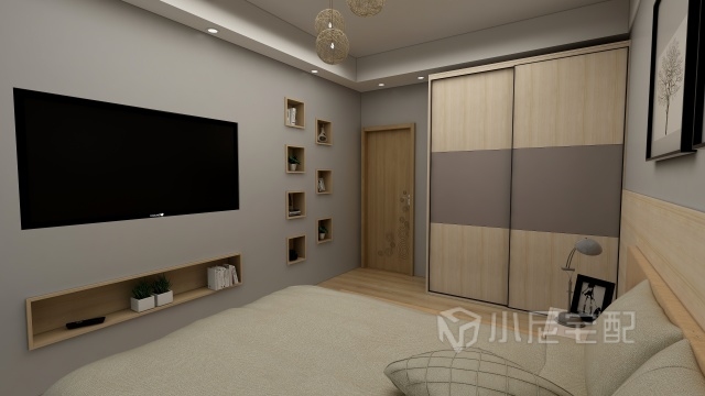 臥房電視墻嵌入式的設(shè)計,更增加了空間的層次感,空間的完美結(jié)合,讓人感覺更加舒服!