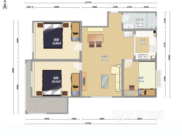 次臥室小尼宅配定制淺色衣柜,加以柔和的色調(diào)營(yíng)造出輕松愜意的氣氛,歡迎客人的到來。