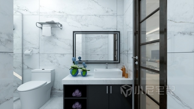 大大的深色浴室柜,在整個(gè)潔凈空間里起了畫龍點(diǎn)睛的作用。