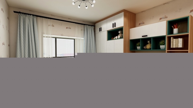 兒童房采用小尼宅配定制榻榻米方案,舒適的原木色柜體配上純白烤漆門板,加以藍(lán)綠色點(diǎn)綴,讓整個(gè)房間有了童趣感,配上簡(jiǎn)單的書桌,滿足了小主人的所有需求。