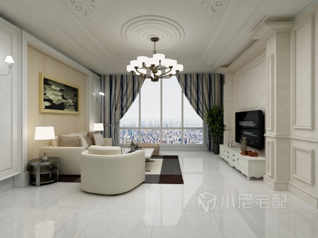 藍(lán)色壁紙搭配白色餐桌酒柜