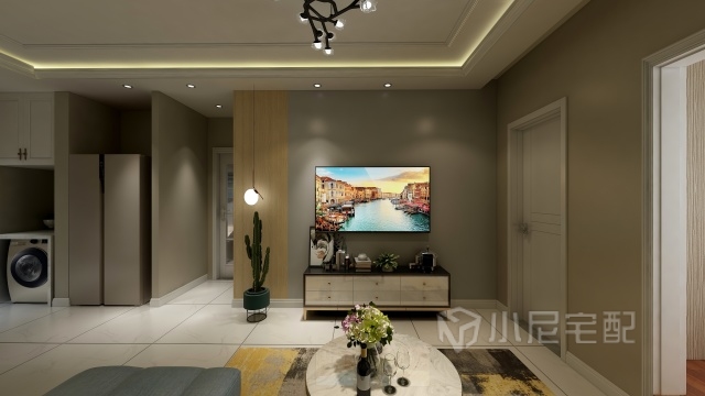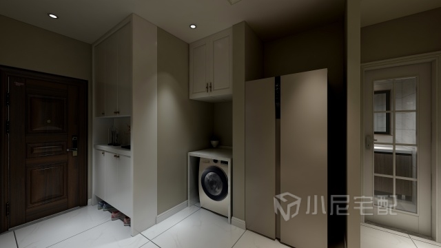 門廳放置洗衣機和冰箱,多出的空間加以合理利用??臻g布局更簡潔