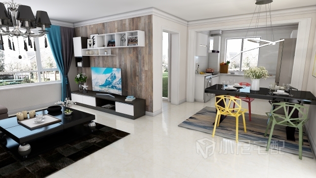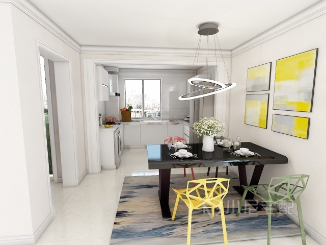 餐廳點綴的幾個彩色家具和裝飾給整個空間增加俏皮年輕感