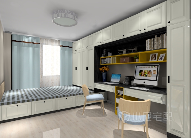 臥室簡潔大方,又有獨立的辦公空間。