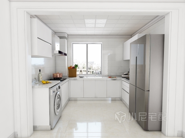 白色大櫥房,特意把洗衣機改到櫥房,把衛(wèi)生間的空間增大了