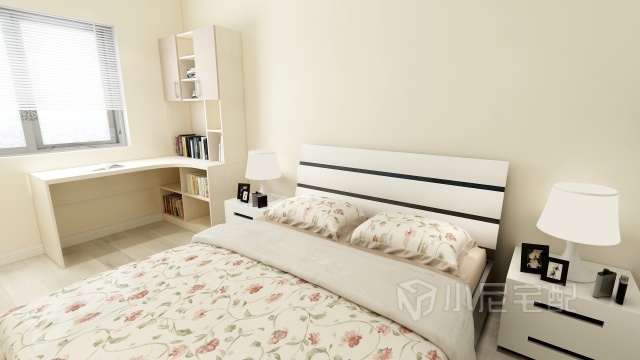 老人房不常住人,同時兼具一定的書房功能,淺色系給人寬敞明亮的感覺