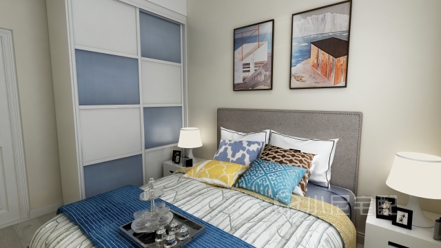 次臥是大兒子的房間,天藍(lán)色和灰色給人舒適的感覺