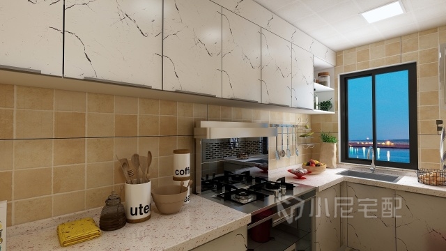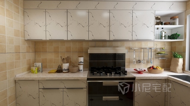L型設(shè)計(jì)多用于空間狹長(zhǎng)的廚房,這樣方便廚房家電的合理布局,并且還能留下相對(duì)充足的活動(dòng)空間。