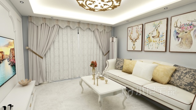 床頭墻面用冷色,搭配白色窗簾,給人靜謐的感覺