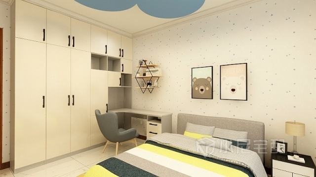 客廳比較寬敞,背景墻運(yùn)用隱形門的設(shè)計(jì)
