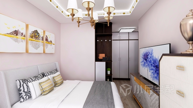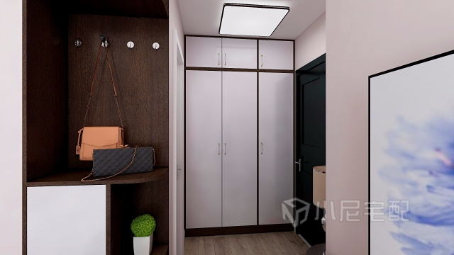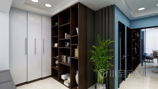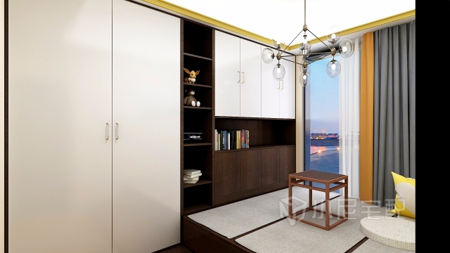 臥室定制了榻榻米代替次臥的床,并用定制大衣柜將這個空間的儲物功能充分開發(fā)。既能做儲物空間,平時沒有客人時這里又能作為家里的小茶室使用。