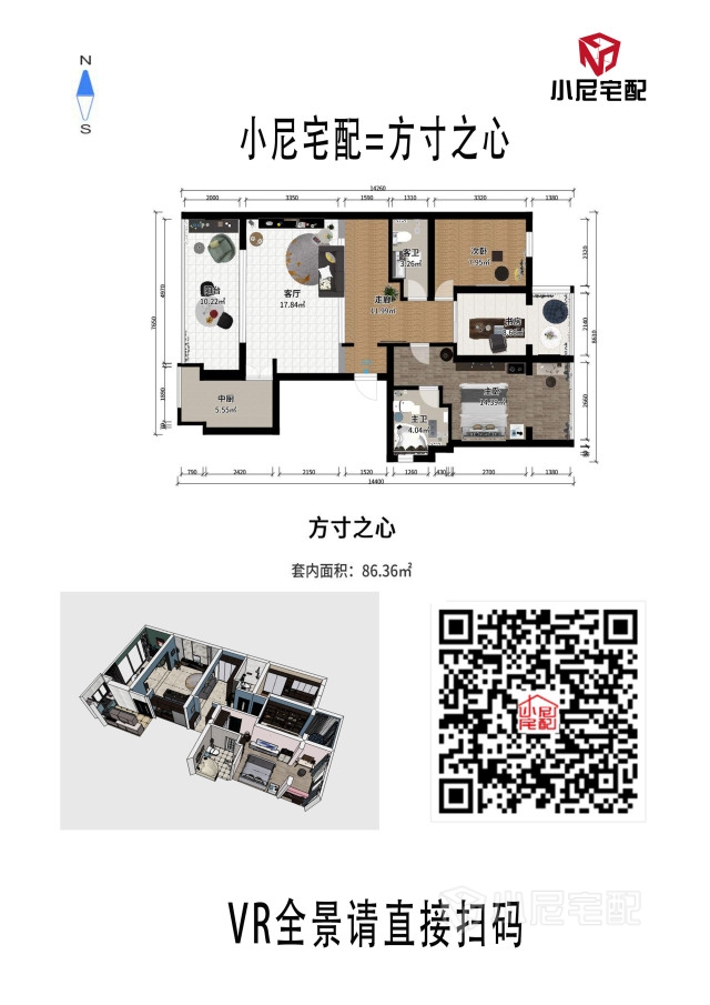86.369㎡#兩室一廳兩衛(wèi)#地中海