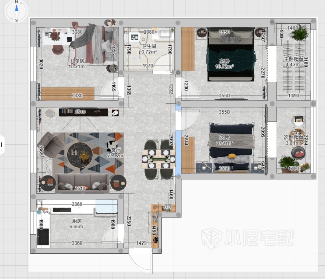 從簡約出發(fā),色彩我們以白色為主,加以木色的家具,給空間增加了溫度,同時活動家具我們以綠色來點綴,讓空間更有活力。