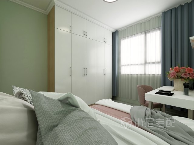 電視墻顏色選擇了更接近家鄉(xiāng)的顏色——草原綠,更凸顯了一種森林系的美感,從而把原有清新的北歐風(fēng)格拓展出了一個新的層次。
