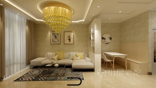 南向的兩居,客餐廳是很大的問題,中間有酒柜做隔斷是空間得到最大利用格局分明,簡約大氣