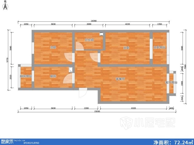 98㎡#兩室兩廳一衛(wèi)#混搭