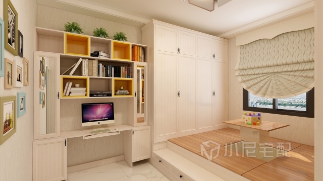 衣柜和書柜相結(jié)合,讓孩子的屋子能夠省出更多的空間來玩耍。