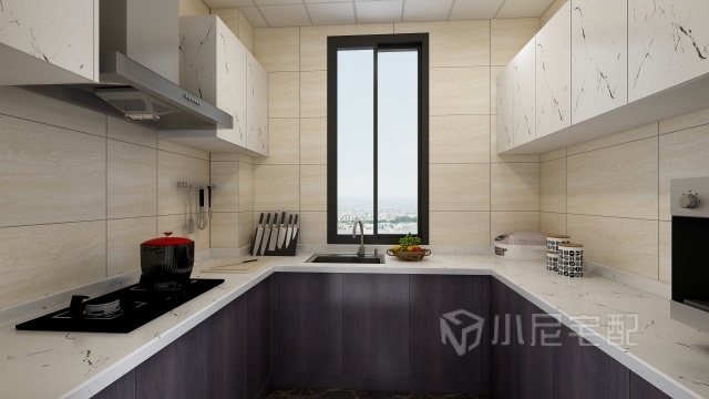 廚房是家里最重要的地方,好的廚房是可以烹飪出美味佳肴,兩個顏色的搭配讓整個廚房更清新。