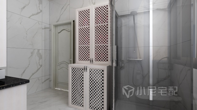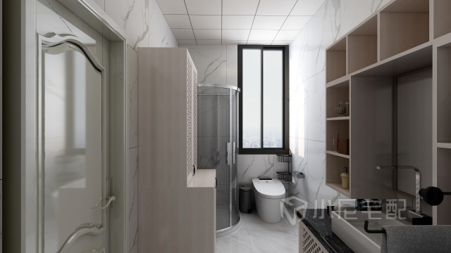 衛(wèi)生間空間小可是要滿足的功能卻很多,水盆上面的開放格,可以放好多瓶瓶罐罐的。