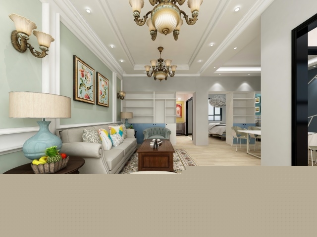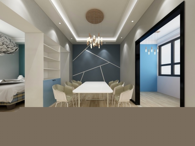 此臥室,看似簡單其實(shí)大有玄機(jī),看到天花板上的燈了么,這可不是一個(gè)簡單的燈,這是一個(gè)羽毛燈,這是一個(gè)吉祥的象征好比白鳥朝鳳這個(gè)燈就是鳳凰。床頭背景那就更不一般了,為什么不一般呢因?yàn)槭撬{(lán)色的。