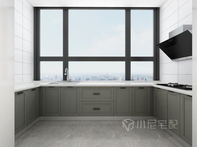 廚房空間是采用白色+木色來搭配裝飾,墻、地面選用白色淺紋大理石瓷磚進(jìn)行鋪貼,櫥柜則是淺木色,搭配白色斑點(diǎn)人造石臺(tái)面很是美觀、簡(jiǎn)潔。不過廚房中的電器都是采用的黑色調(diào)顏色,恰到好處的嵌入式設(shè)計(jì)在廚房?jī)?nèi),整體上看一切從簡(jiǎn)設(shè)計(jì),以簡(jiǎn)約功能化為主,注重空間結(jié)構(gòu)布局,強(qiáng)調(diào)廚房的明亮與簡(jiǎn)潔。這種設(shè)計(jì)充分體現(xiàn)了現(xiàn)代生活的簡(jiǎn)約、實(shí)用。