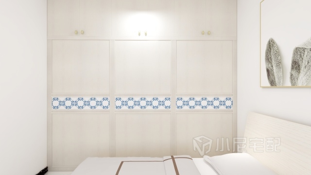 主臥墨藍色窗簾搭配淺藍色床品,簡單 有品位