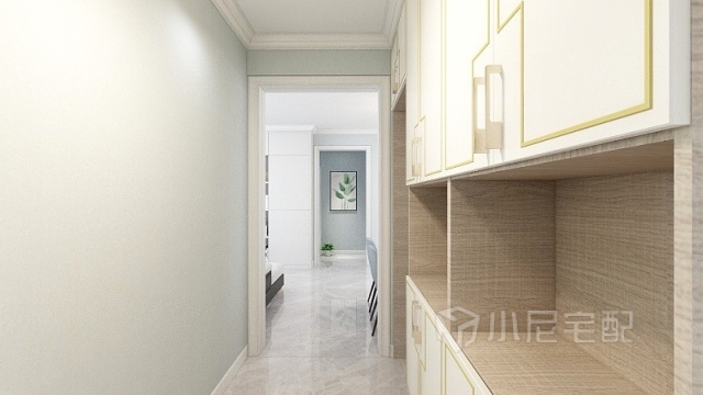 進戶門處做轉(zhuǎn)角輕奢鞋柜,顯得簡單而不單調(diào),增加儲物空間