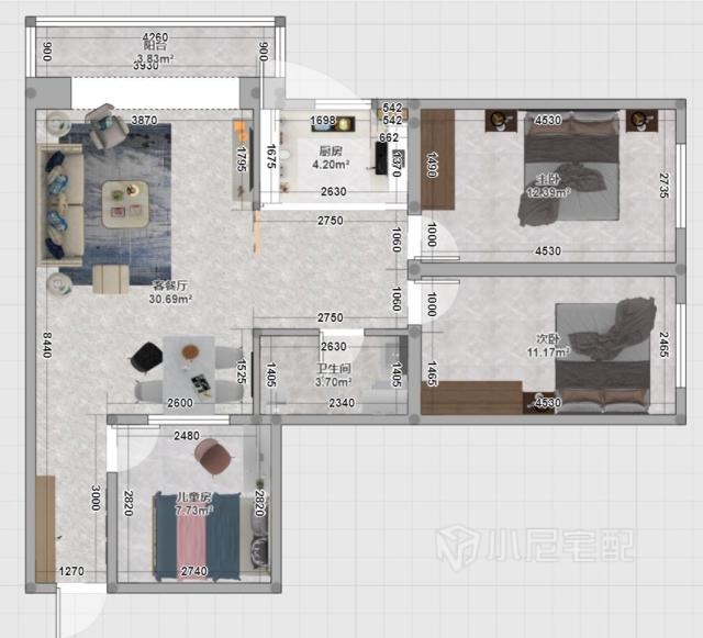 102㎡#三室兩廳一衛(wèi)#現(xiàn)代