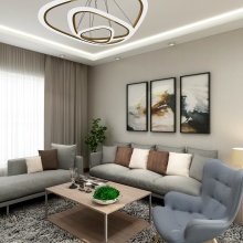 此方案為現(xiàn)代簡約! 設(shè)計里有冷靜的灰色、 有柔和的暖色、還 有大膽的顏色跳躍 。生活不是一塵不變的, 但是 一天過去褪去工作的緊張感、 生活的壓力感 ,回到家是恬靜、闊以的!