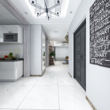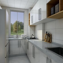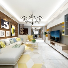時尚簡潔,空間以實用為主,美觀為輔,開闊明朗,體現(xiàn)高品質的家居環(huán)境即可。 案例說明:簡約不等于簡單,它是設計師深思熟慮后經(jīng)過創(chuàng)新得出的設計和思路的延展,不是簡單的“堆砌”和平淡的“擺放”,在本案設計中設計師把原有的廚房和客廳相融合使客廳整體空間變得更大使用起來更舒適。在家具配置上,白亮光系列家具,獨特的光澤使家具倍感時尚,具有舒適與美觀并存的享受。在配飾上,延續(xù)了黑白灰的主色調,以簡潔的造型、完美的細節(jié),營造出時尚前衛(wèi)的感覺。