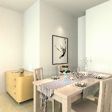 整個空間的顏色搭配以黃色為主,使整個空間顯得更加溫馨,家裝、家具一體價14.5萬。