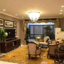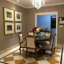 少了富麗堂皇的裝飾和濃烈的色彩,呈現(xiàn)的則是一片清新,典雅和大氣并存的輕松空間。肌理的電視背景墻,明亮素實的窗簾,和古典色彩的地毯相呼應的吊燈,加上造型簡潔大方的沙發(fā)構成了一個典型的歐洲世界,送給心靈一次歐洲的游歷。