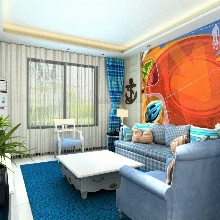 漂亮別致的地中海風情,色彩清爽明亮,獨特的造型和設計使人心境開闊,白色的吊頂,藍色的家居,充滿沿海風情的裝飾物,將地中海風格表現(xiàn)的淋漓盡致。