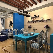 地中海風格的靈魂就是“蔚藍色的浪漫情懷,海天一色、艷陽高照的純美自然”。設計中添加咖色以中和色調(diào),爛漫中不失沉穩(wěn)