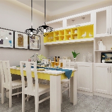 選用湖藍和明黃兩種裝飾色點綴空間,色彩感強,明亮鮮艷,適合年輕的群體。整體設計輕硬裝重軟裝,大量選用定制家具,更好的利用空間,個性化定制。