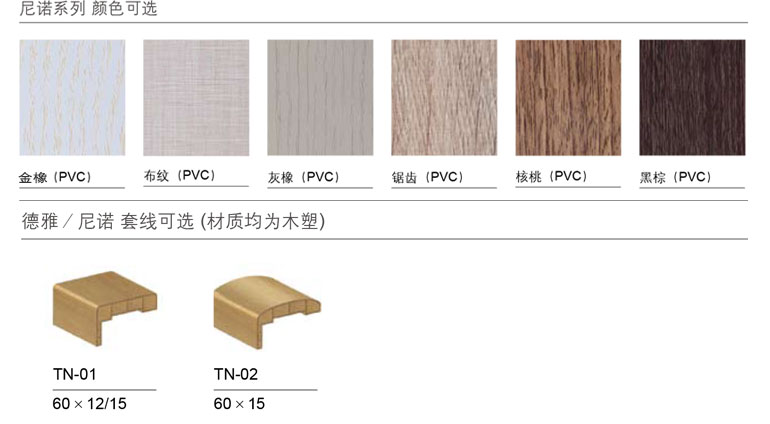 | 可選顏色 | 金橡、布紋、灰橡、鋸齒、核桃、黑棕 |