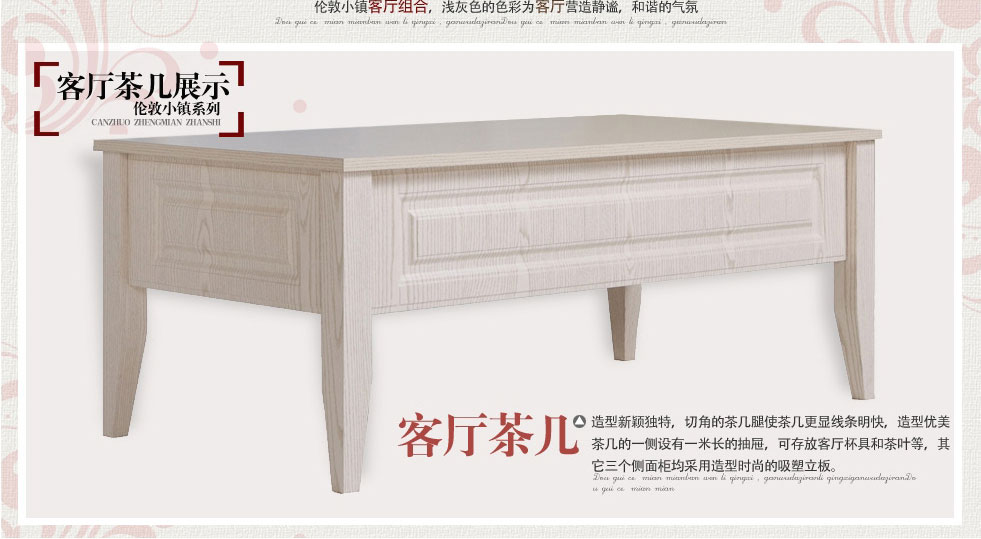 首頁 > 產(chǎn)品中心 > 客廳 > 倫敦小鎮(zhèn)系列客廳4件套