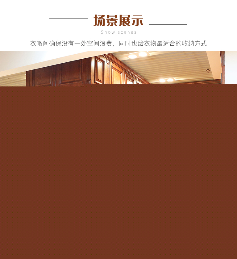 | 細(xì)節(jié)描述 | 衣帽間確保沒有一處空間浪費(fèi),同時(shí)也給衣物最適合的收納方式。衣柜內(nèi)加入了格架和抽屜專門用來收納小的物品,可推拉的儲(chǔ)物衣柜讓空間利用更加合理,軟包護(hù)墻板和鏡子,舒適美觀,使用安全 ,使整體空間裝飾效果明顯,方便保養(yǎng)維護(hù)。漫步其中,每一寸空間都擁有無論倫比的精致與奢華。 |