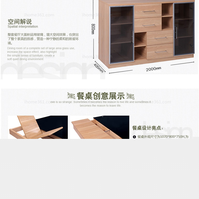 | 規(guī)格 | 餐桌:1070(1660)×800×750mm 餐椅:450*450*850mm 酒柜:800×400×2000mm |