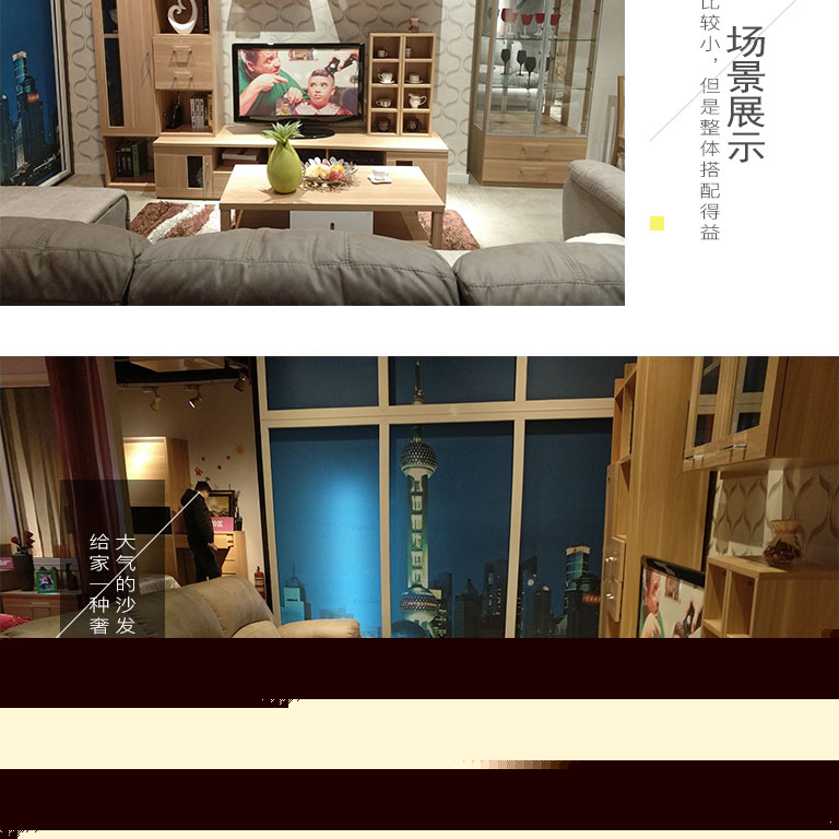 | 細(xì)節(jié)描述 | 電視柜可隨意搭配,讓空間擁有更多可能,大氣的沙發(fā),給家一種奢華感。 |