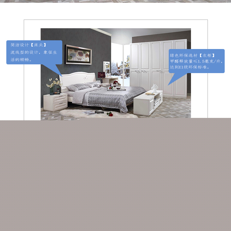 | 細節(jié)描述 | 整套臥室簡潔有序,功能齊全的同時,并不顯得擁擠,活動空間富足。 |