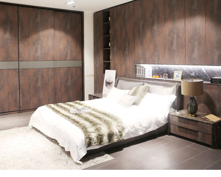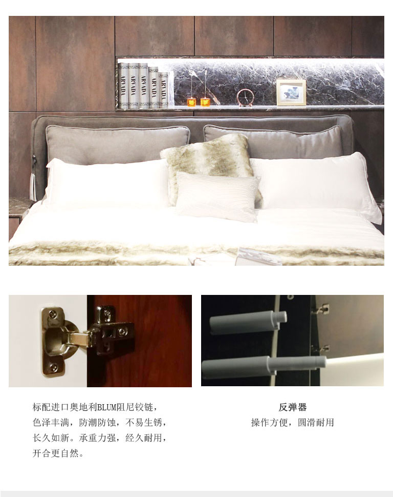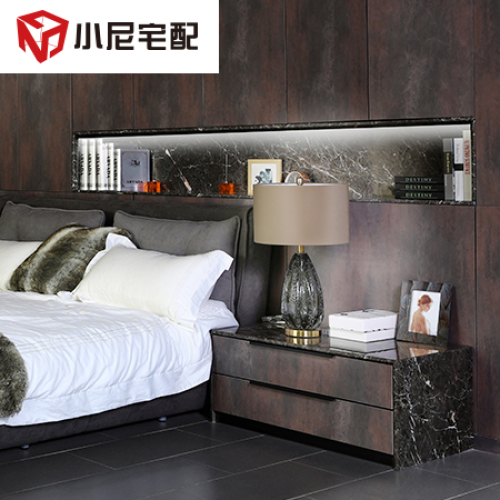 | 細節(jié)描述 | 背景墻設有開放式的空間用來存放睡前讀物,深色火山巖帶來的厚重質感完全可以讓你安心閑讀、悠然入眠。 |