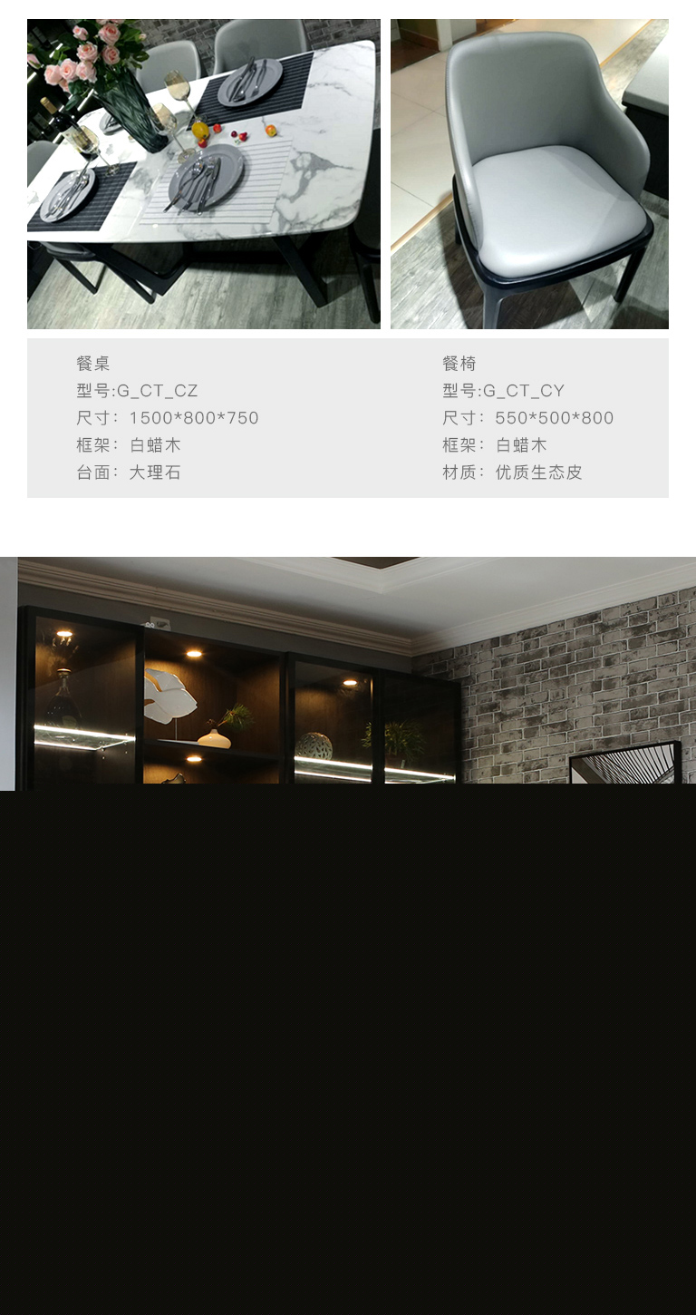 | 規(guī)格 | 定制柜(定制) 餐桌:1500*800*750mm 餐椅:550*500*800mm |