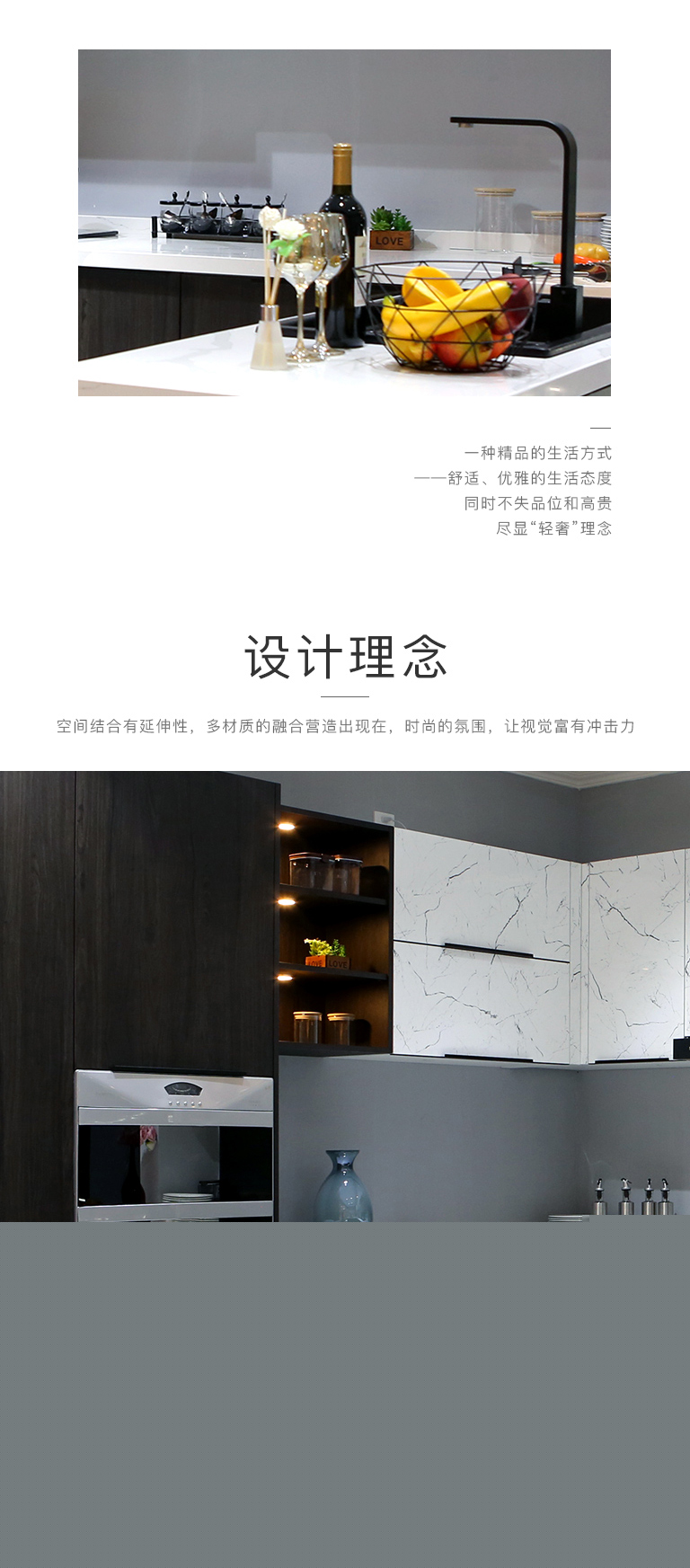 | 產(chǎn)品特色 | 輕奢風(fēng)格的空間以黑白灰為主色調(diào),用色彩的純度傳遞細(xì)膩的質(zhì)感。造型簡(jiǎn)潔,線條流暢的家具組合搭配,營(yíng)造出穩(wěn)定、協(xié)調(diào)、溫馨的空間感受,滿足現(xiàn)代年輕家庭的輕奢需求。 |